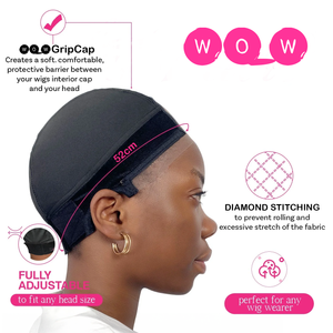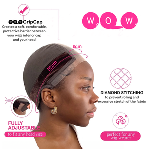 GripCap offre une tenue solide et fiable pour maintenir votre perruque ou votre dentelle bien en place toute la journée. Doté d'une sangle réglable, il s'adapte confortablement à toutes les tailles de tête, éliminant ainsi le besoin de couper des bandes antidérapantes. Le matériau velours léger et respirant garantit que votre cuir chevelu reste frais, et le bonnet reste pratiquement indétectable pour un look naturel et sans couture. Il est réutilisable et lavable en machine, ce qui vous permet d'économiser de l'argent à long terme. Dites adieu aux bonnets de perruque inconfortables et fragiles et profitez d'une expérience de port de perruque sûre et sans effort au quotidien.